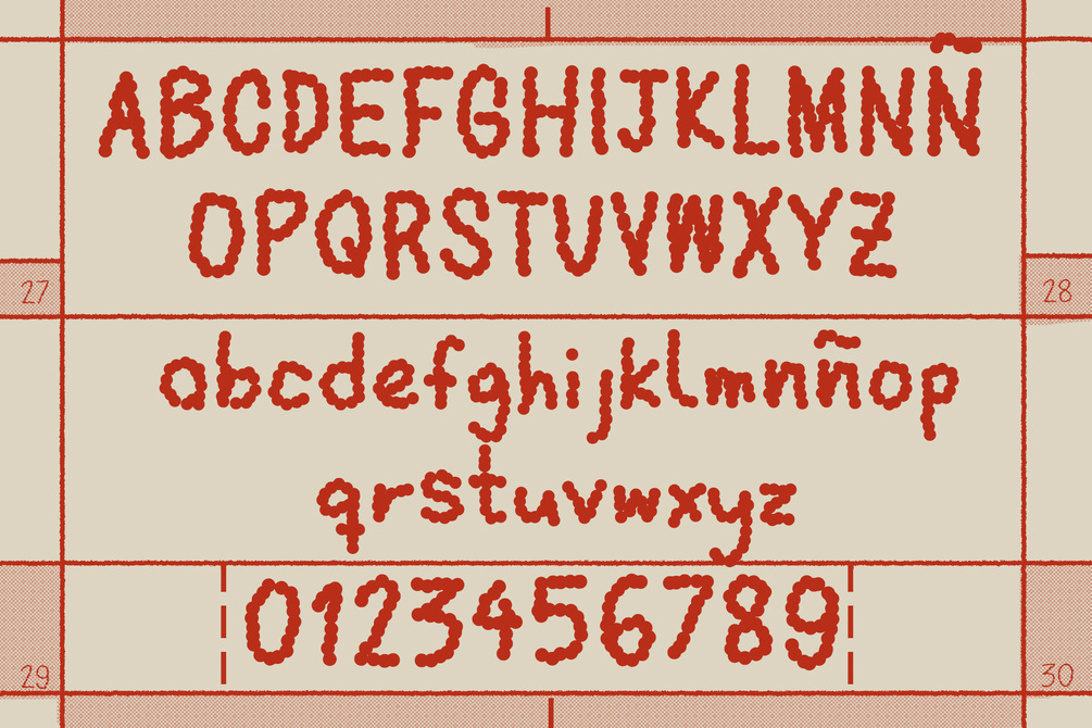 Dotted is a charmingly handmade display font that brings dots to any project. Available in three versatile weights - Regular, Semi Bold, and Bold - this font caters to a wide range of creative needs.