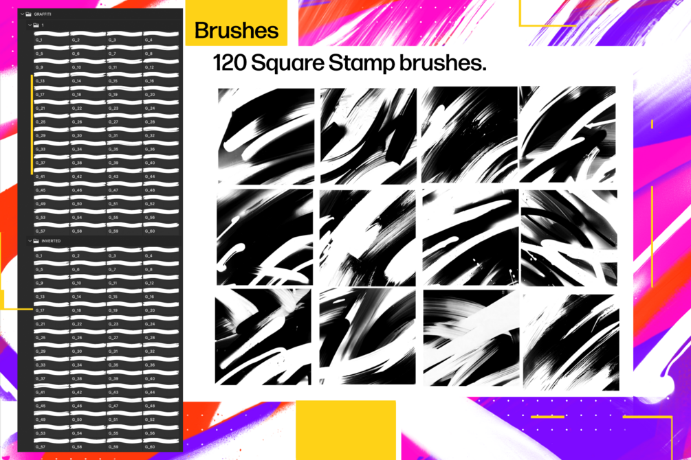 120 Photoshop and Procreate Graffiti Brush Stamps + pngs of each brush included.